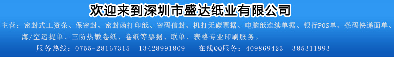 深圳市盛達(dá)紙業(yè)有限公司創(chuàng)立于二零零二年八月,經(jīng)國(guó)家相關(guān)部門(mén)批準(zhǔn)注冊(cè)成立,是深圳市誠(chéng)信印刷企業(yè)會(huì)員之一。專(zhuān)業(yè)致力于票據(jù)聯(lián)單印刷服務(wù),業(yè)務(wù)廣泛,品質(zhì)專(zhuān)一。在長(zhǎng)期實(shí)踐與競(jìng)爭(zhēng)中積累了大量的、先進(jìn)的印刷領(lǐng)域相關(guān)知識(shí)與經(jīng)驗(yàn),以更高要求的品質(zhì)產(chǎn)品滿(mǎn)足用戶(hù)多樣化的需求。我公司擁有多條進(jìn)口機(jī)械生產(chǎn)線(xiàn),集設(shè)計(jì)、制版、印刷于一體和完善的售后服務(wù)。主營(yíng):?jiǎn)螕?jù)、票據(jù)紙印刷 。深圳市盛達(dá)紙業(yè)有限公司本著“高品質(zhì)、更專(zhuān)業(yè),誠(chéng)信至上、客戶(hù)第一”的經(jīng)營(yíng)服務(wù)理念,與眾多企業(yè)建立了長(zhǎng)期的合作關(guān)系。公司位于深圳市寶安區(qū)龍華鎮(zhèn)橫嶺工業(yè)區(qū)內(nèi),具備了深圳市現(xiàn)代化、方便、快捷、先進(jìn)的物流平臺(tái),為新老客戶(hù)提供長(zhǎng)期穩(wěn)定門(mén)對(duì)門(mén)的一條龍服務(wù)。熱誠(chéng)歡迎各界朋友前來(lái)參觀(guān)、考察、洽談業(yè)務(wù)。