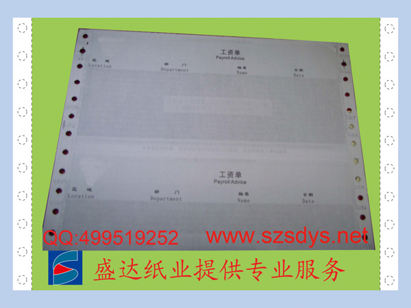 盛達(dá)紙業(yè)專業(yè)訂制:企業(yè)工資紙。此產(chǎn)品選用高級(jí)無(wú)碳木槳原紙。紙質(zhì)平整,復(fù)寫(xiě)顯色效果好,采用全新進(jìn)口表格印刷機(jī)配套進(jìn)口高品質(zhì)環(huán)保油墨及膠水生產(chǎn)。具有保存時(shí)間長(zhǎng)、電腦孔位標(biāo)準(zhǔn)、打印順暢、不易卡紙、印刷版面干凈、清晰,顯碳效果好等優(yōu)勢(shì)。