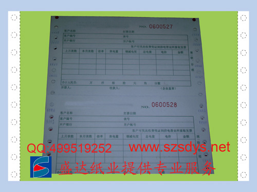 專業(yè)為工廠、銀行、賓館、郵電系統(tǒng)、物流速遞、企業(yè)和事業(yè)單位的電腦管理系統(tǒng)的現(xiàn)代化管理,提供配套的電腦打印紙印刷。單色、二色、三色、四色、多色、正反面印刷電腦紙送貨單、速遞單、倉(cāng)儲(chǔ)單等可印刷多色單層及2—8聯(lián)無(wú)碳復(fù)寫電腦紙表格,適用于企業(yè)、醫(yī)院、銀行,運(yùn)用針式打印機(jī)實(shí)現(xiàn)多聯(lián)套打,可加工快撈孔及打流水號(hào)碼(紅色、黑色、藍(lán)色)。高度尺寸(英寸):7″、8″、8.5″、9″、10″、10.5″、11″、11.667″、12″、12.5″、13″、14″、15″、16″、17″、18″、22″寬度尺寸(英寸): 3″— 15″ 均可生產(chǎn)印刷。備注:?jiǎn)螌蛹垙埡穸葹?0g、70g、80g、100g、120g特殊規(guī)格可根據(jù)客戶要求特別制作。歡迎來(lái)電咨詢訂購(gòu),網(wǎng)上咨詢訂購(gòu),本公司真誠(chéng)為您服務(wù)!深圳地區(qū)免費(fèi)配送,香港及國(guó)內(nèi)其它省市可委托快遞、貨運(yùn)公司交貨。