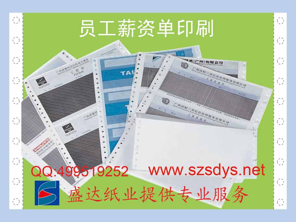 工藝:工資條紙為一份三聯(lián)無(wú)碳紙,紙質(zhì)有55克及80克任客戶選擇,工資條紙版面內(nèi)容可按客戶要求排版,印刷上單位標(biāo)志及單位名稱中英文、注意事項(xiàng)等要求內(nèi)容。常用尺寸為:93*217mm、140*241mm。四周通過(guò)有色膠粘接、正反面通過(guò)印刷保密底紋、保密效果好。通過(guò)對(duì)電腦紙涂膠粘合及相關(guān)部位的增感油墨或減感油墨的印刷,實(shí)現(xiàn)員工薪酬明細(xì)信息的保密。有多種版式、保密花紋可選用,通過(guò)針式打印機(jī)套打使用。工資條紙具有無(wú)碳復(fù)寫、電腦連續(xù)打印、私人信息保密功能。為確保工資條紙?jiān)趥鬟f或郵寄時(shí)的保密,收件人必需沿三邊刀位撕開(kāi)此產(chǎn)品,方能審閱內(nèi)里的資料。